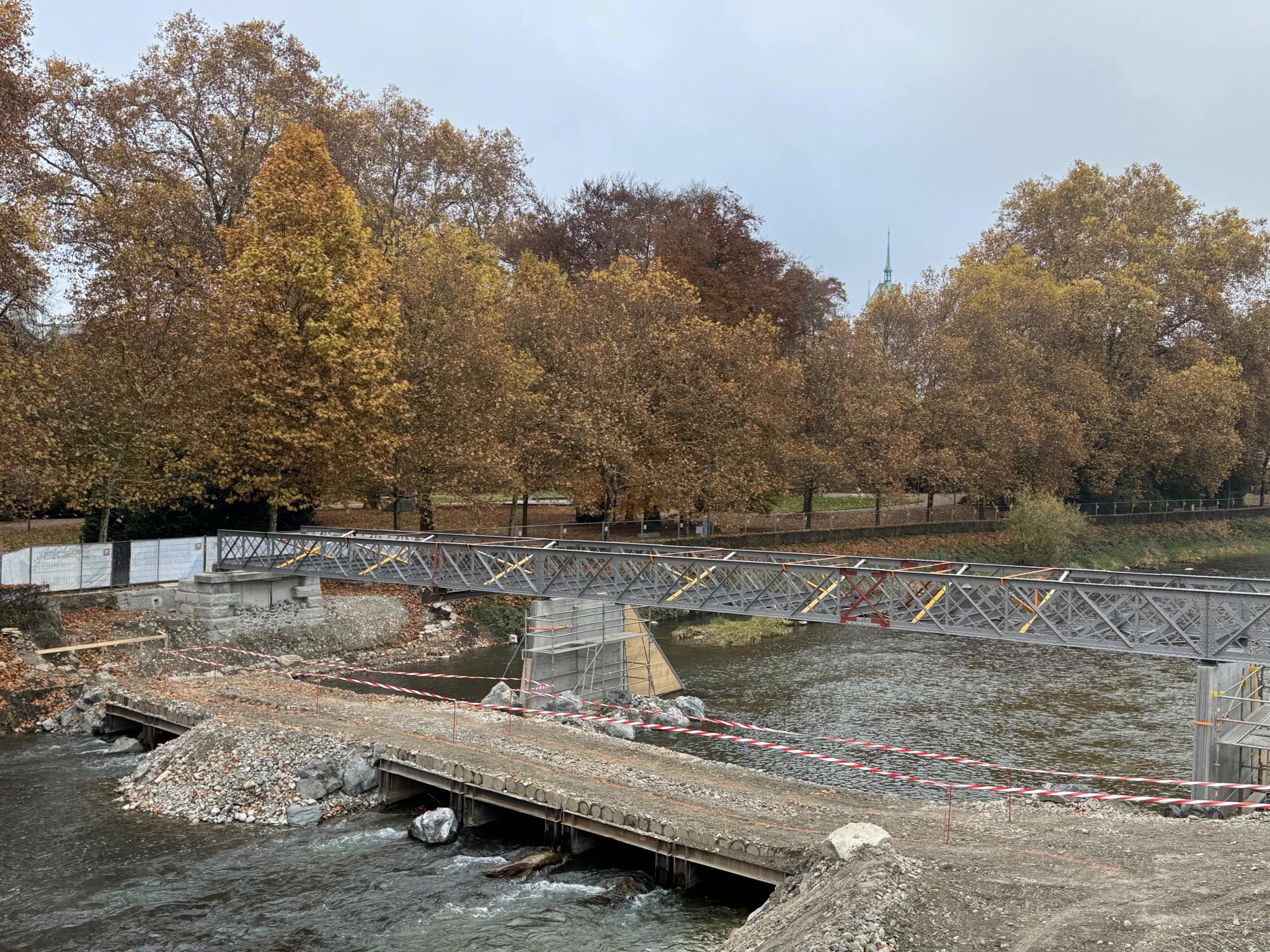 Der bestehende Mattensteg wurde bei den Zustandsaufnahmen 2005 als schadhaft beurteilt. Das AWEL plant zudem das Platzspitzwehr instand zu setzen. Da der Mattensteg als Zufahrtsbrücke nicht für solch hohe Nutzlasten (Verkehrslasten) ausgelegt ist, kann die Erschliessung zum Wehr nicht über diesen erfolgen. Daher wird am Standort des Mattensteges eine neue Dienstbrücke gebaut. Da der bestehende Mattensteg im Inventar schützenswerter Bauten ist, wurde entschieden, den bestehenden Mattensteg zu erhalten, ca. 80 m flussaufwärts zu verschieben und instand zu stellen. Am neuen Standort sind neue Widerlager und Pfeiler im Bereich der Sihl geplant.