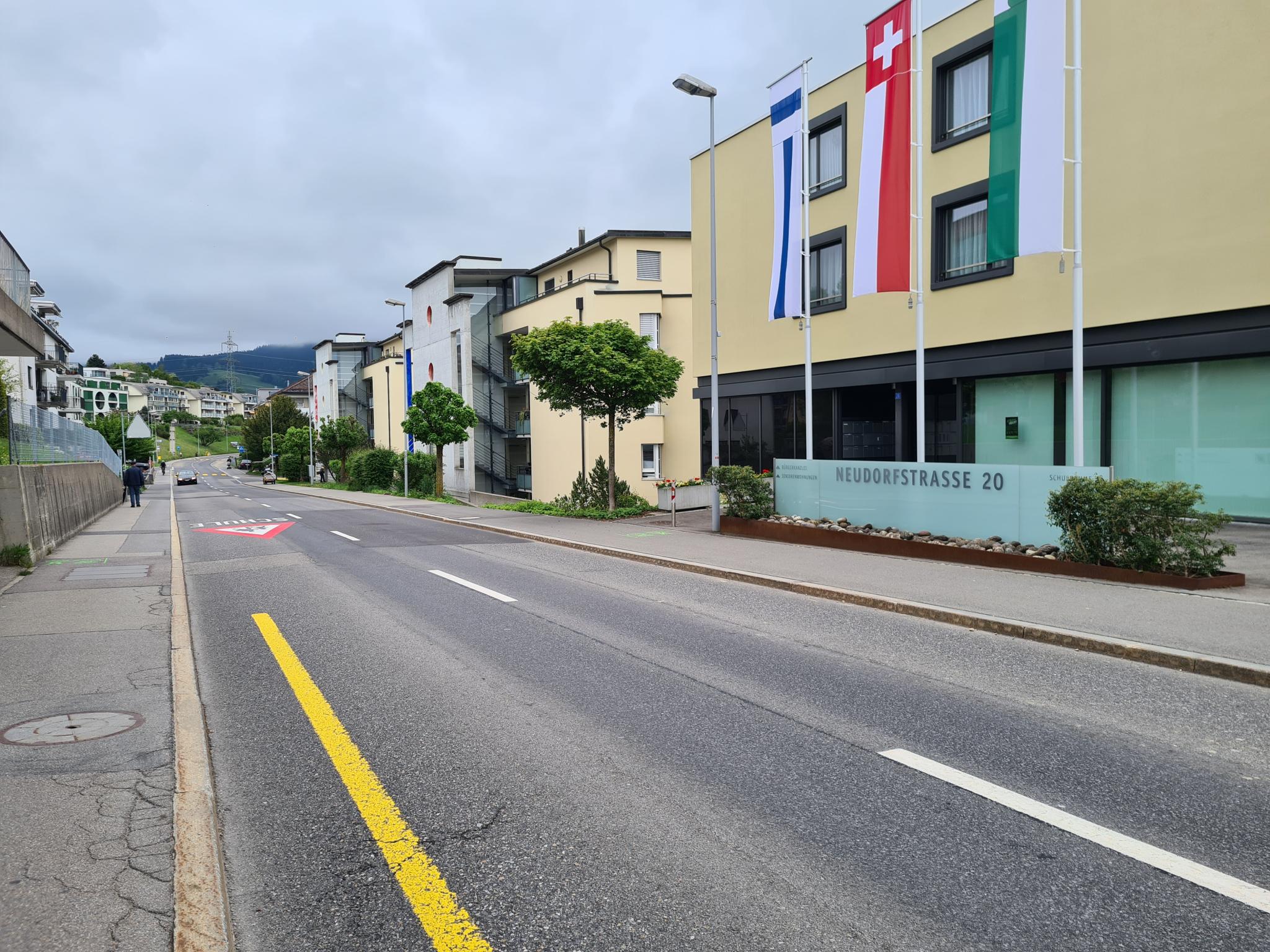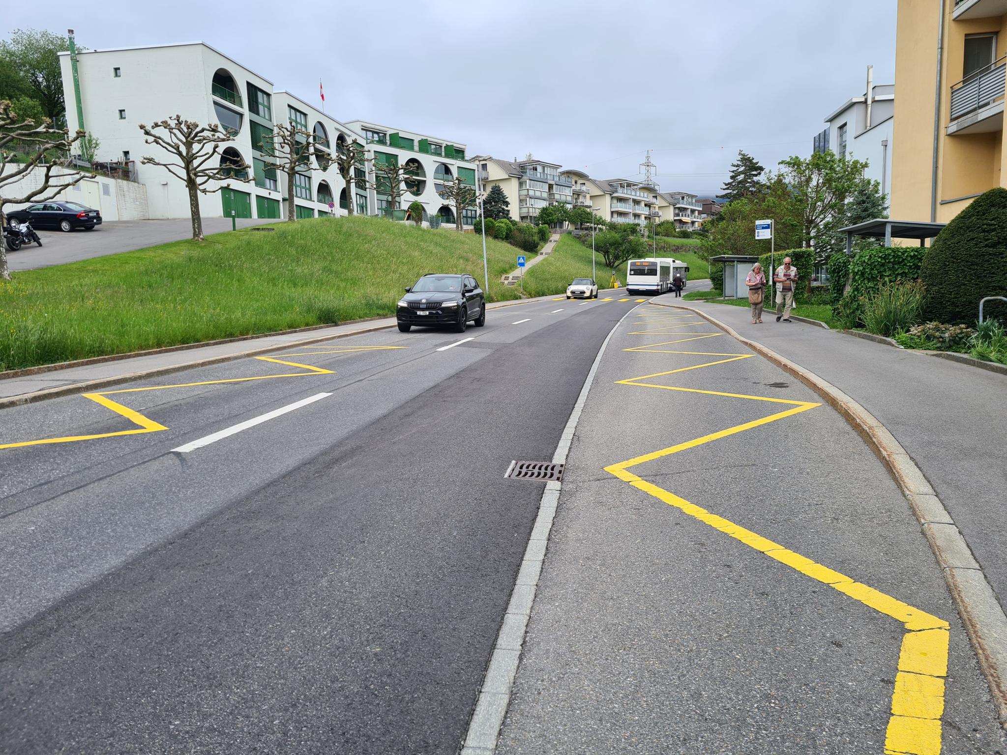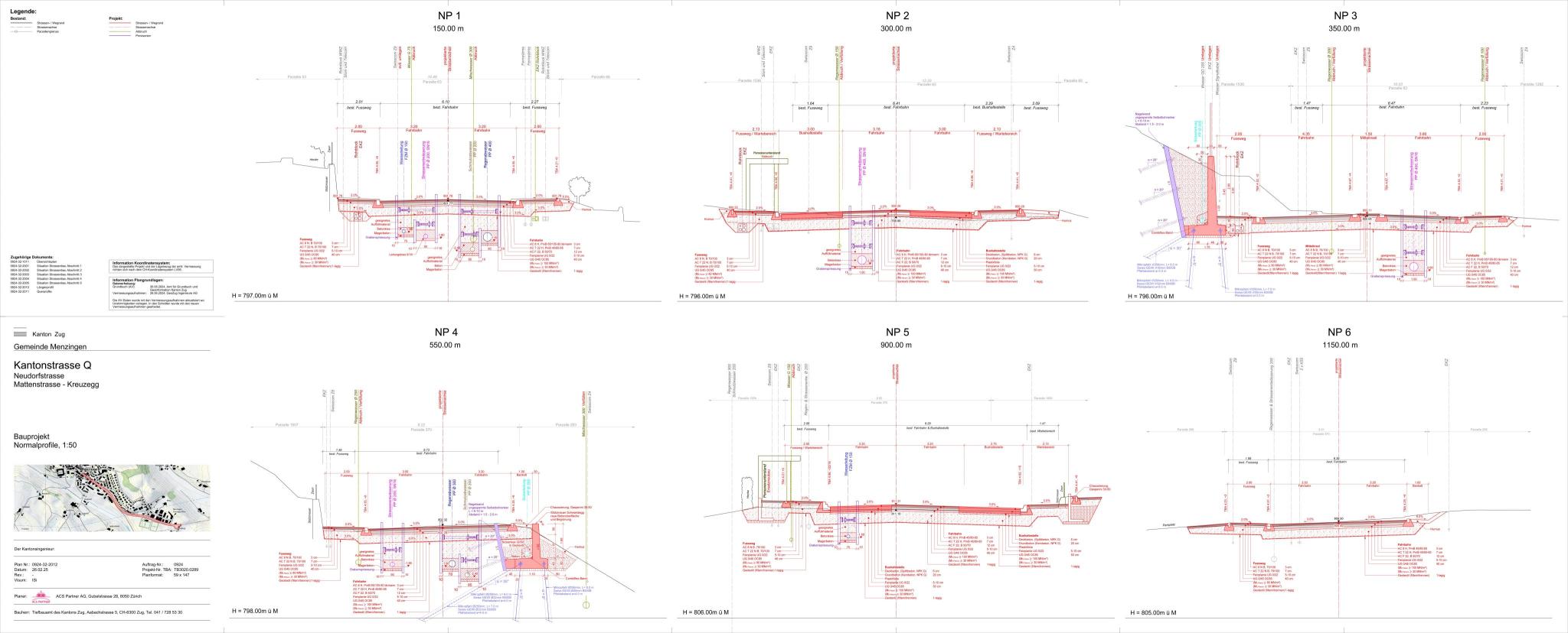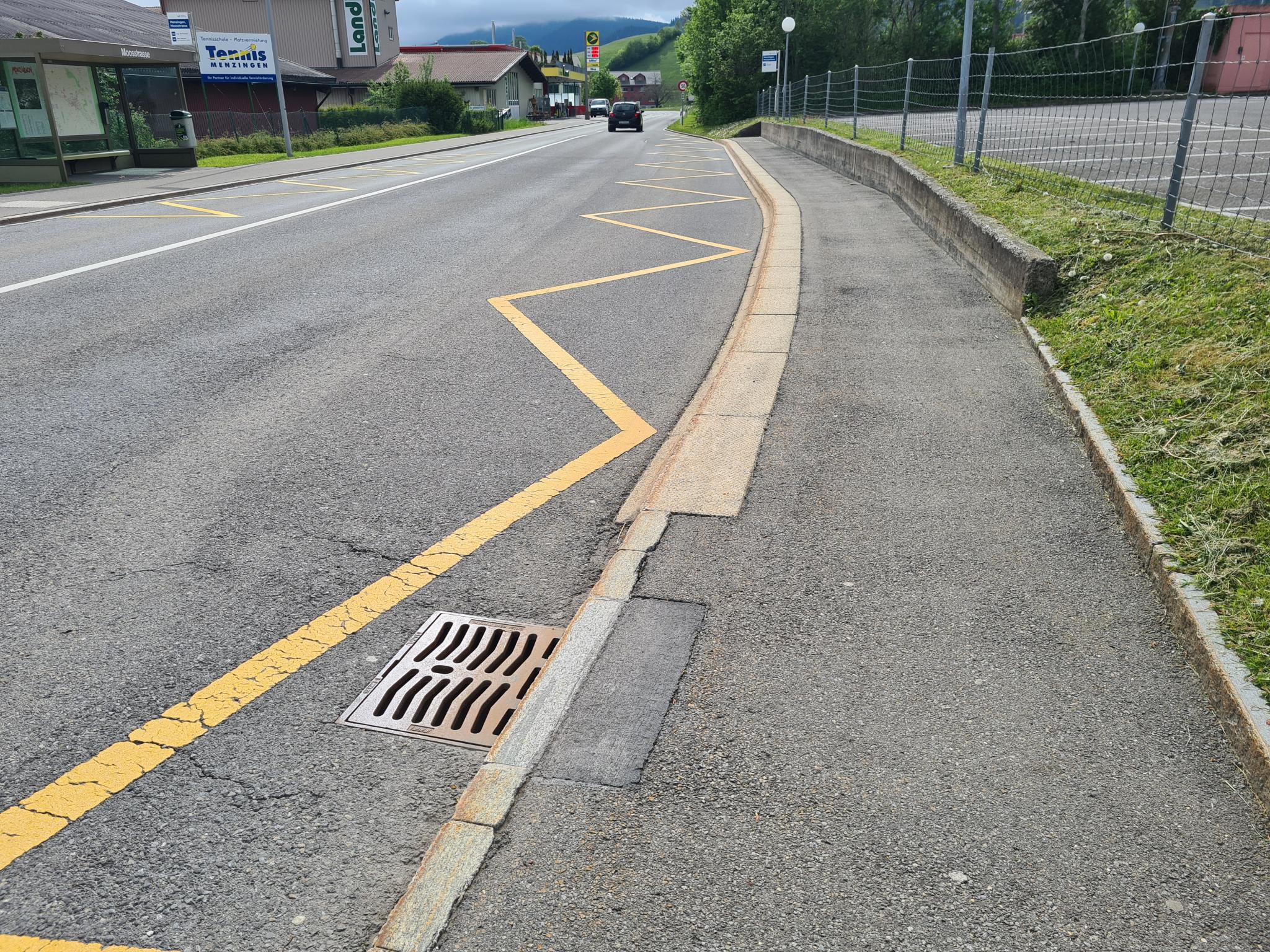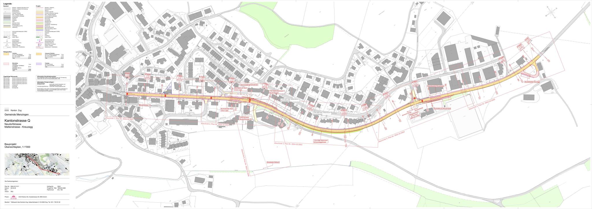 - Die Kantonsstrasse Q Neudorfstrasse (KS Q) in Menzingen ist im Abschnitt zwischen Mattenstrasse und Kreuzegg in einem schlechten, sanierungsbedürftigen Zustand und soll umfassend erneuert werden. Im besagten Projektperimeter ist ein Totalersatz inkl. Fundationsschicht und der Randsteine vorgesehen. Die Bushaltestellen Weid, Moosstrasse und Kreuzegg werden barrierefrei mit einem Anschlag von 22 cm ausgebaut. Bei der Bushaltestelle Weid ist in Richtung Zug neu eine Busbucht vorgesehen. Diese Änderungen erfordern eine hangseitige Stützmauer im Bereich der Bushaltestelle Weid sowie eine talseitige Stützmauer oberhalb der Schwandeggstrasse. Weiter wird die teilweise schadhafte Strassenentwässerung norm- und gesetzeskonform erneuert, von der kommunalen Kanalisation getrennt und den neuen Gegebenheiten angepasst. Zur Retention des Strassenabwassers vor Einleitung in den Edlibach wird ein Speicherkanal erstellt. Die Realisierung ist voraussichtlich in den Jahren 2027 bis 2029 geplant.